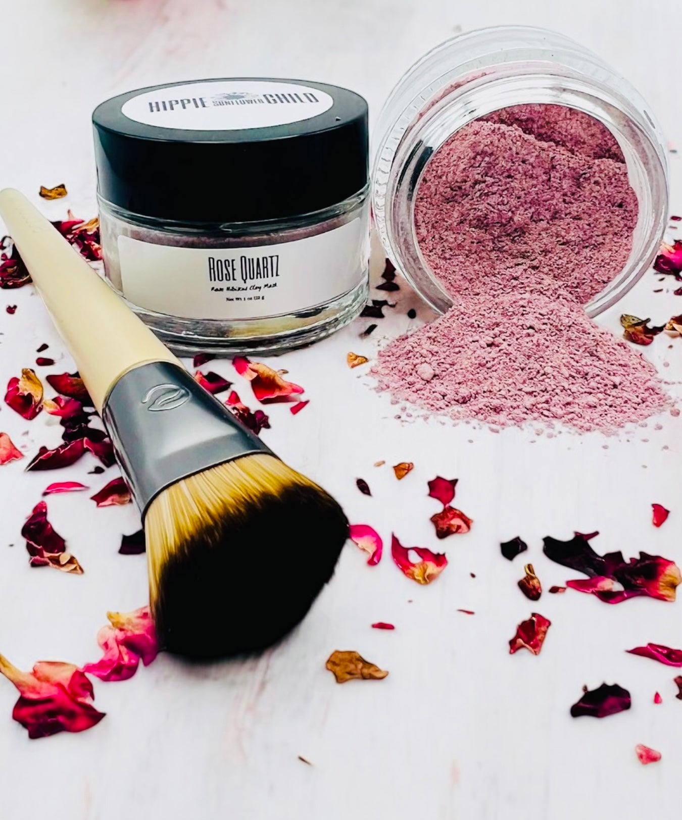 In 2 oz glass jars, our Rose Quartz Rose Hibiscus Facial Mask is crafted to give your skin a smooth, natural glow.